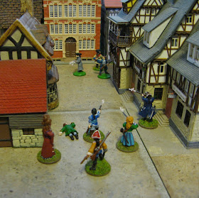 Not knowing what he had got into, assuming the lady was in trouble, Steven drew his sword and bravely took on one of the men in the square ...